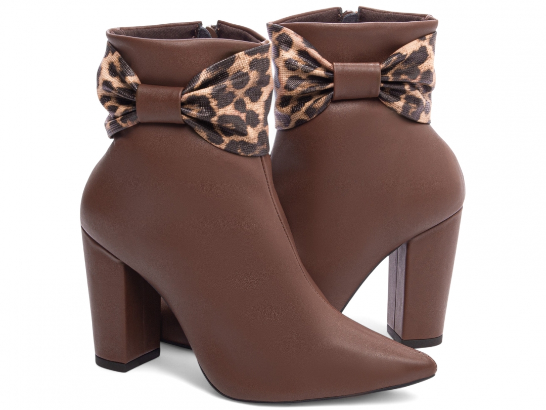 Enfeites: Zíper na Cor Marrom Caf e Tiras em Laço na cor Napa Marrom Caf / Napa Onça