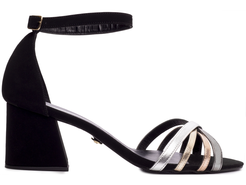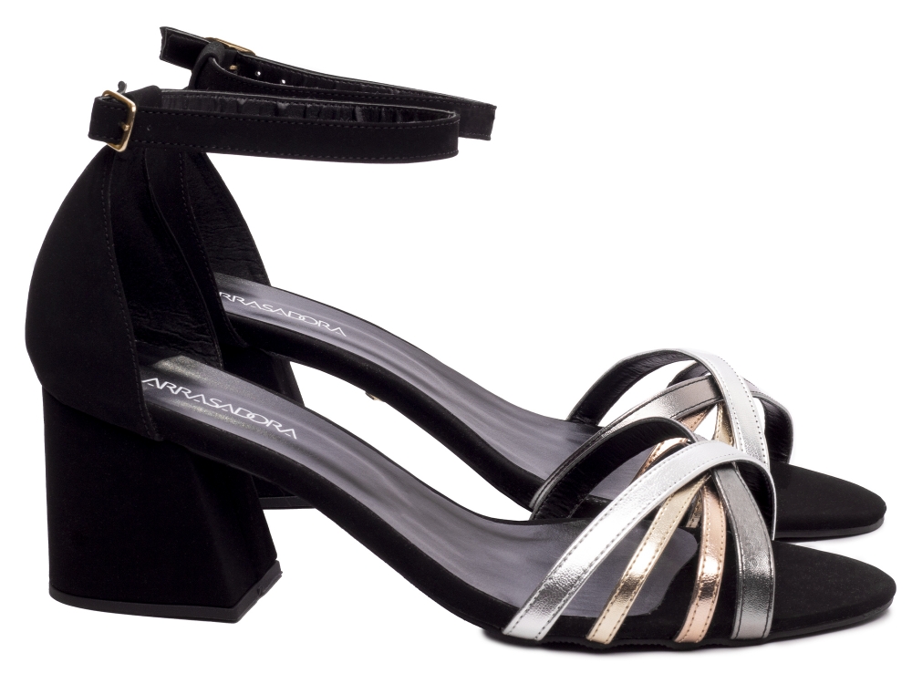 Palmilha: 8 mm de Espessura, Espuma em EVA, Revestida em Napa Metalizado Prata e Taloneira Napa Bege