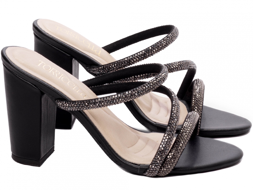 Material: Napa Preto / Manta de Strass na cor Grafite.