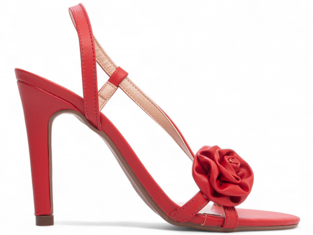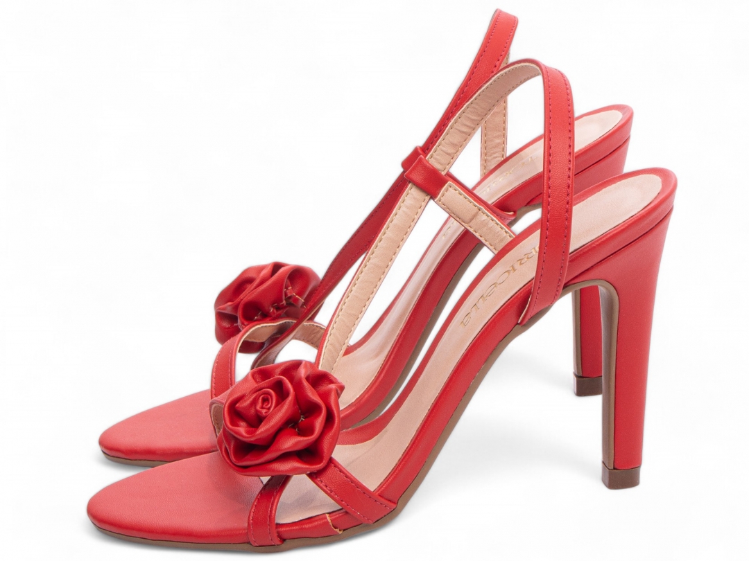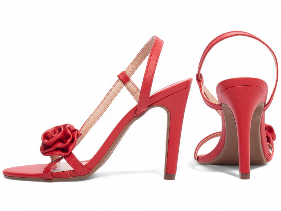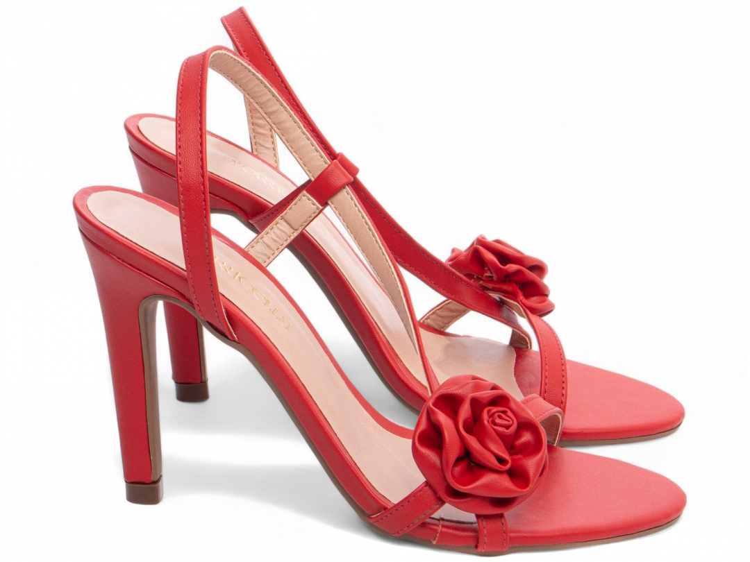 Sandália Feminina Salto Alto Vermelha Detalhe com flor