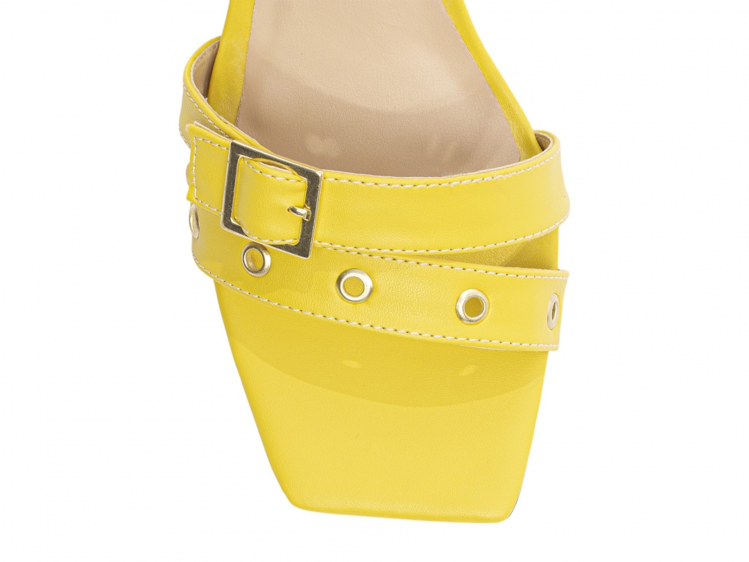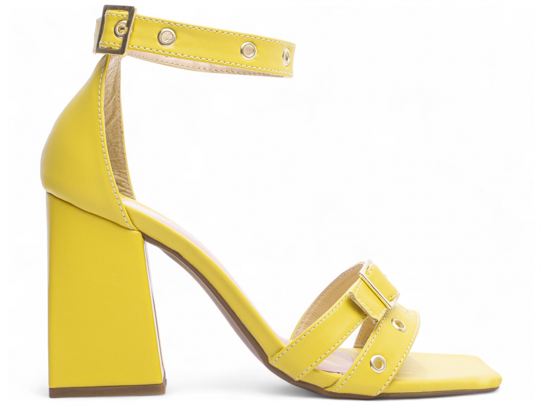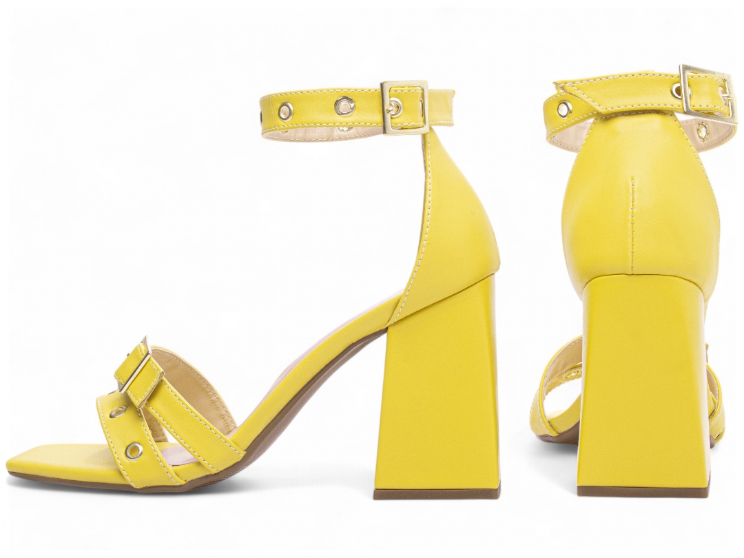 Salto: Grosso com 9 cm de Altura Revestido em Napa Amarelo.