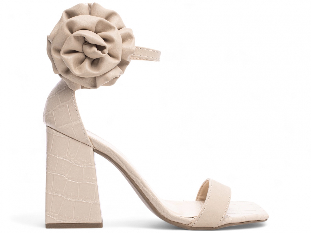 Salto: Grosso com 9 cm de Altura Revestido em Napa Croco Bege.