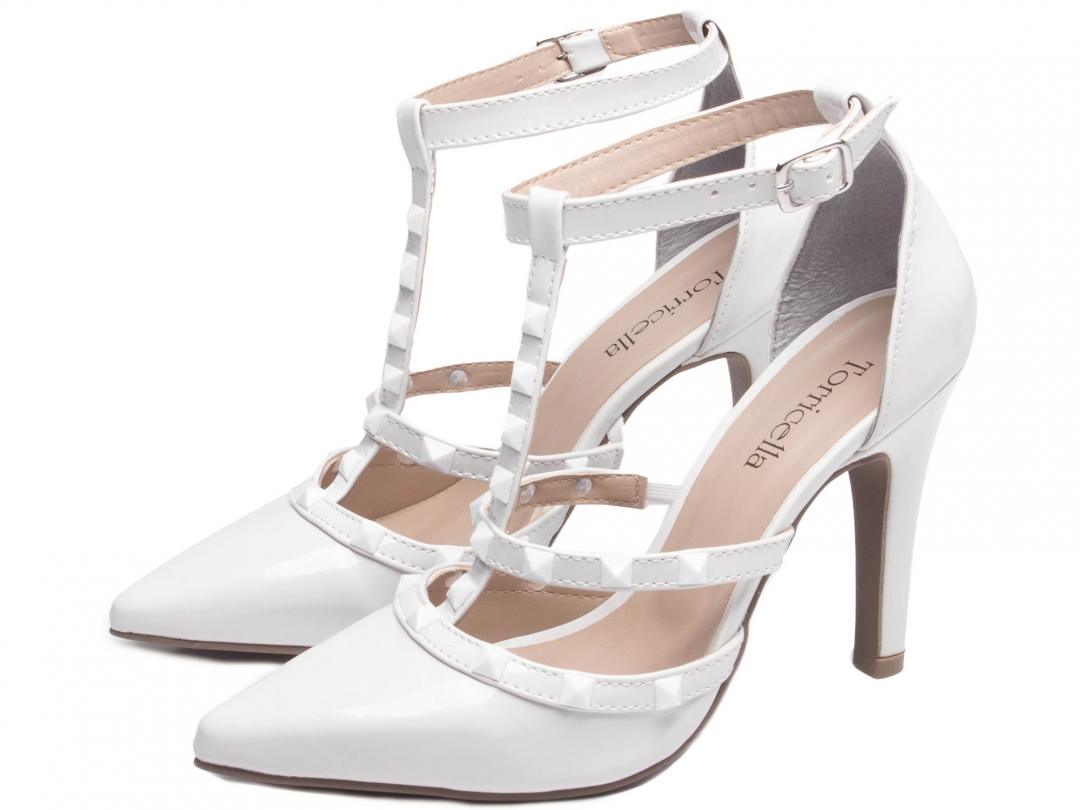 Salto: 9 cm de Altura Revestido em Verniz Off White;
