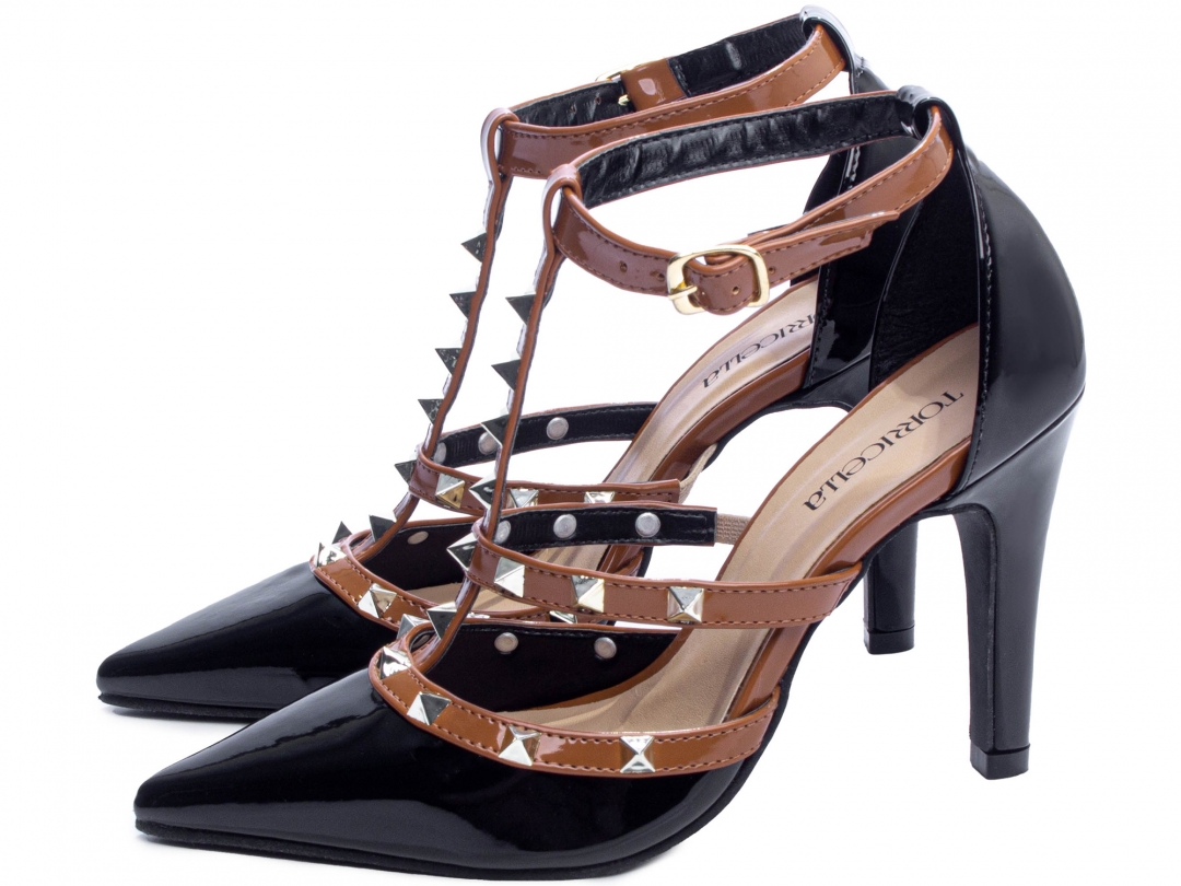 Salto: 9 cm de Altura Revestido em Verniz Preto;