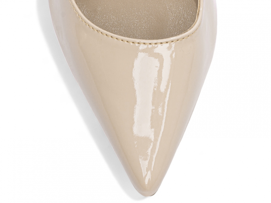 Palmilha: 8 mm de Espessura, Espuma em EVA, Revestida em Verniz Bege e Taloneira Napa Bege