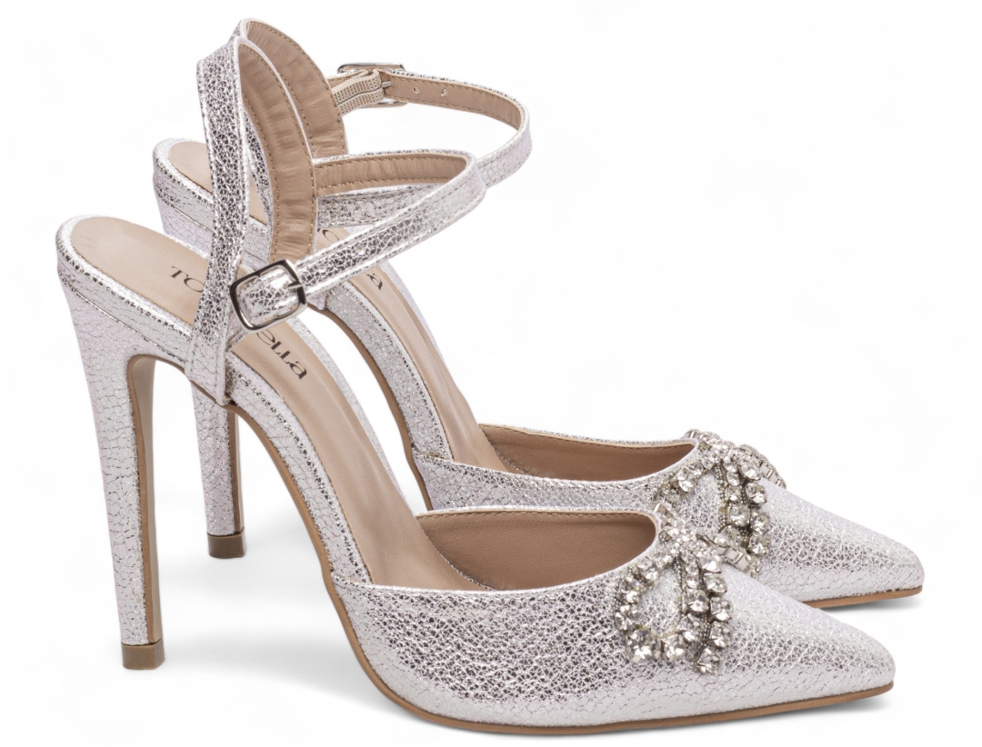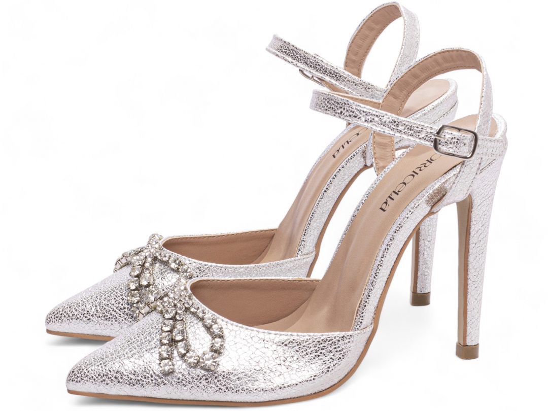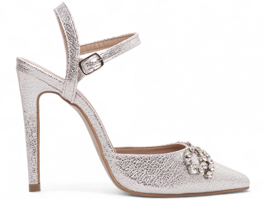 Salto: 12 cm de Altura e Revestido em Napa Metalizado Prata