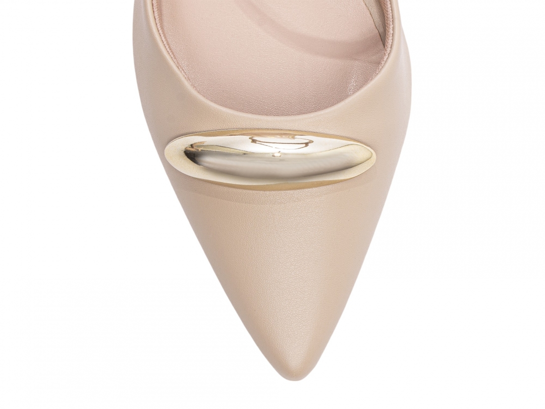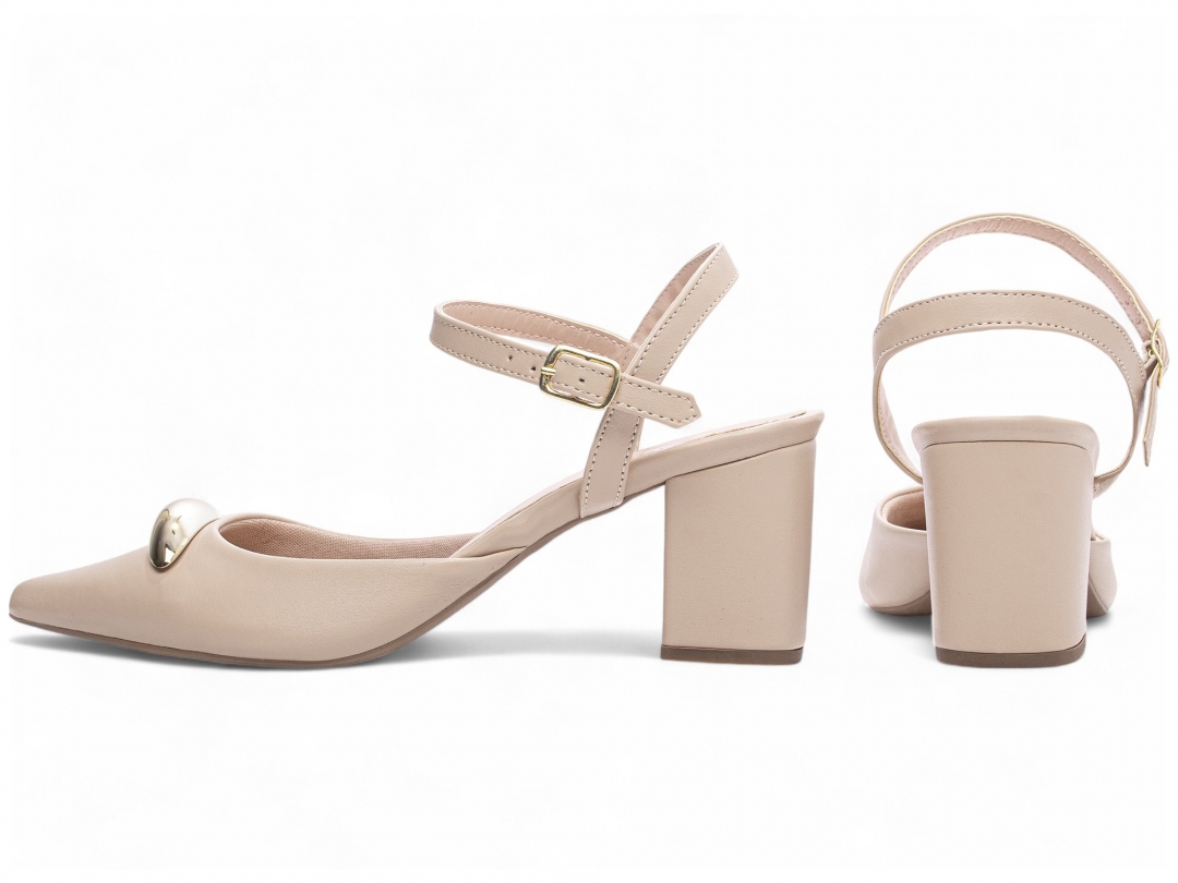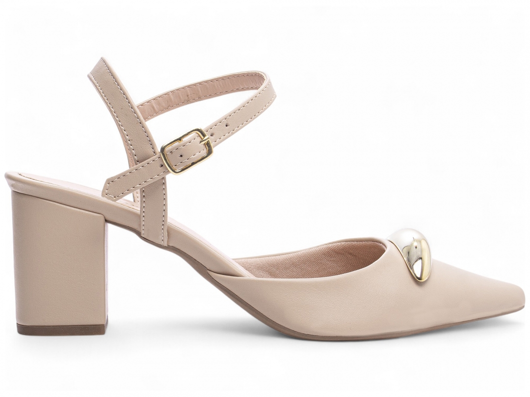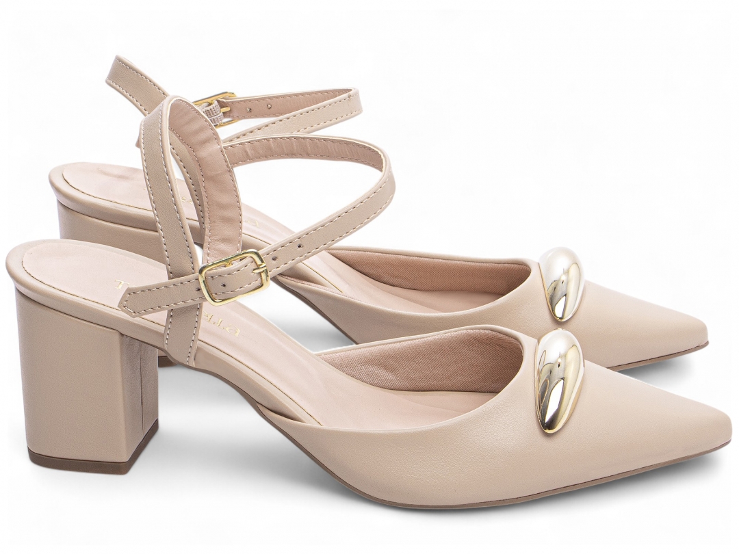 Palmilha: 8 mm de Espessura, Espuma em EVA, Revestida em Napa Bege e Taloneira Napa Bege
