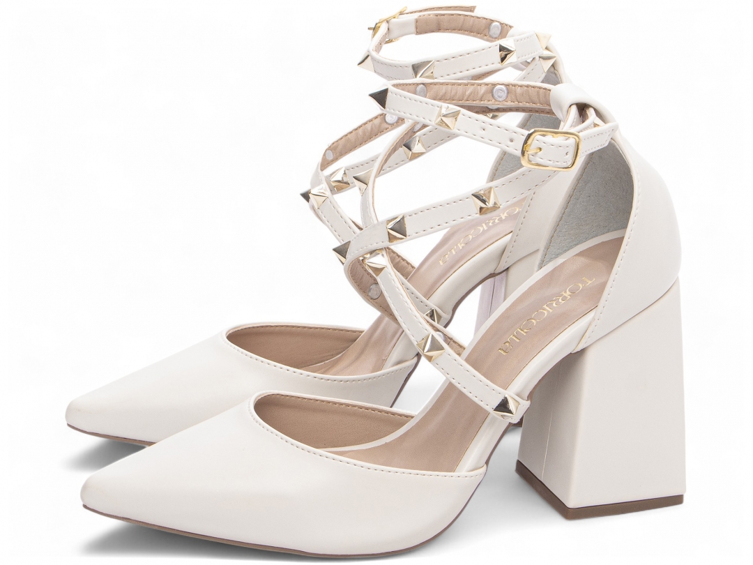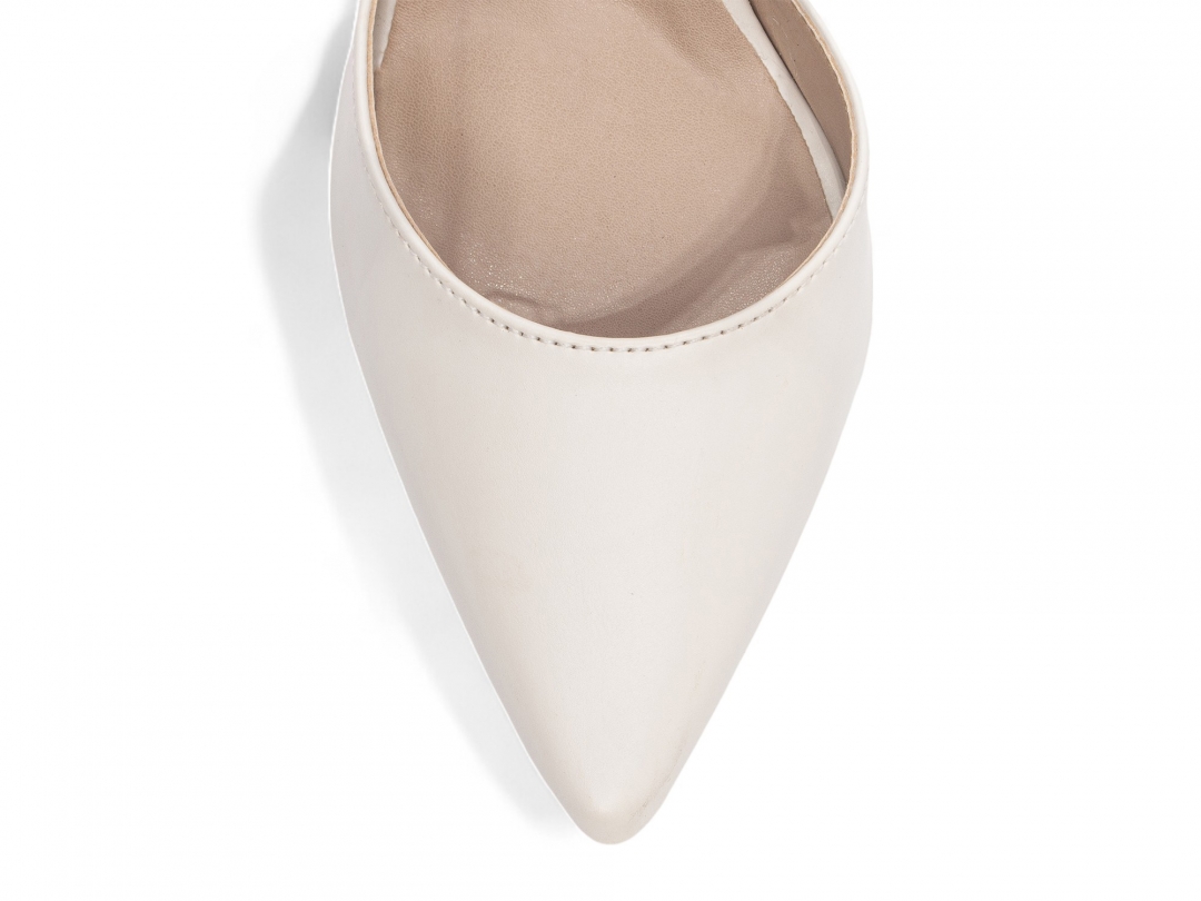 Palmilha: 8 mm de Espessura, Espuma em EVA, Revestida em Napa Off White e Taloneira Napa Bege