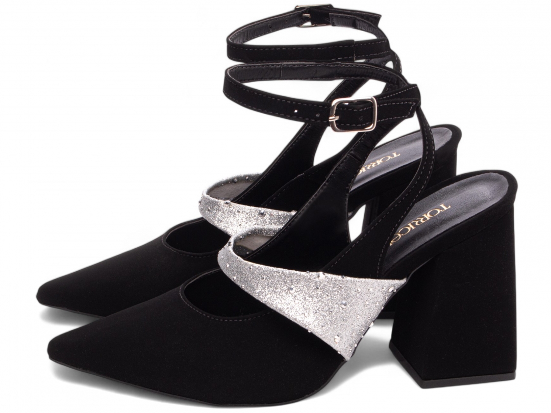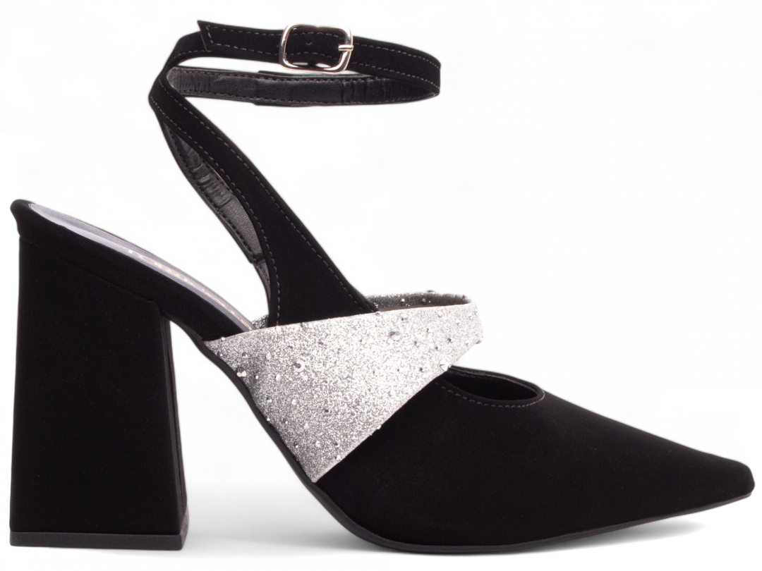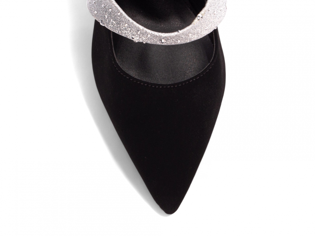 Sapato Scarpin Salto Alto Nobuck Preto Glitter Cor Prata