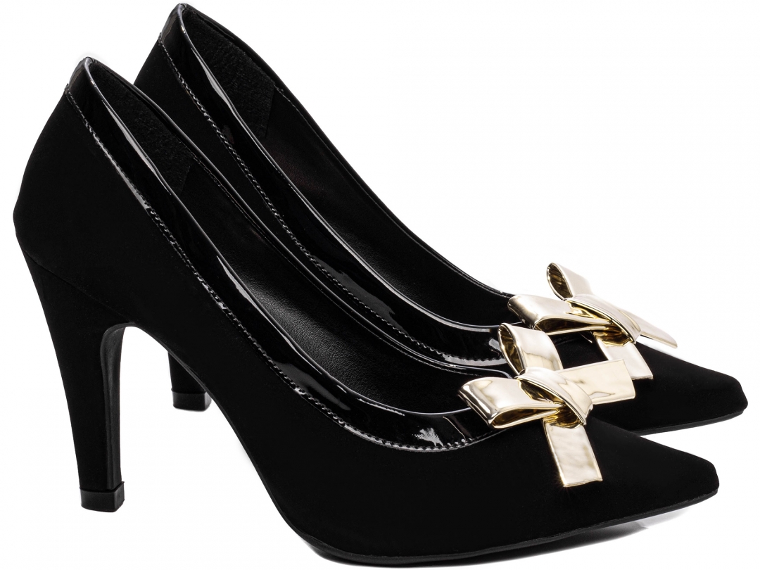 Material: Nobuck Preto, Verniz Preto e Metalizado Speechio Ouro Light