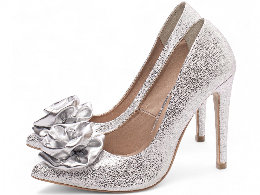 Salto: 12 cm de Altura Revestido em Napa Napa Craquele Prata