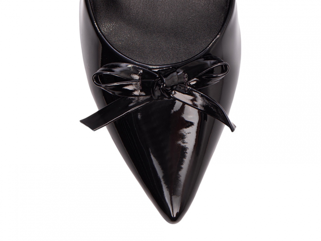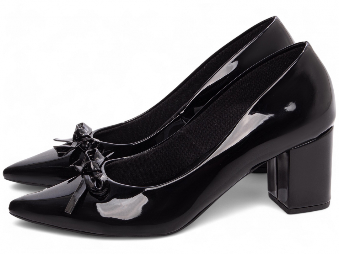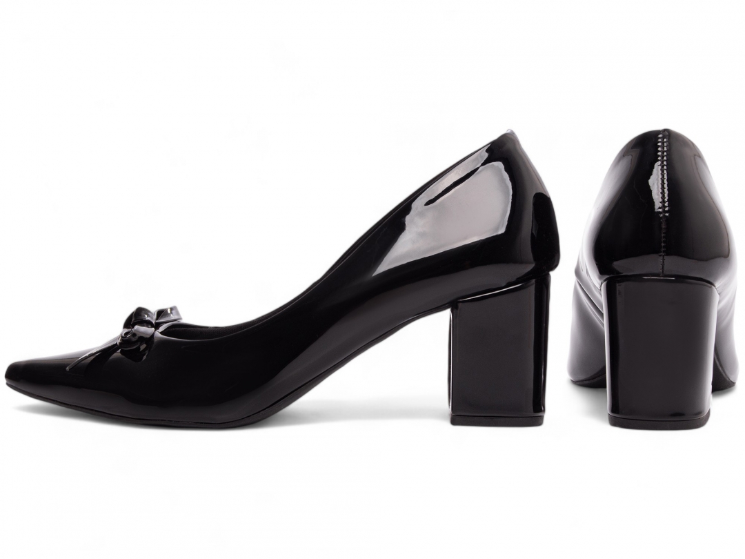Salto: Grosso com 6,5 cm de Altura Revestido em Verniz Preto