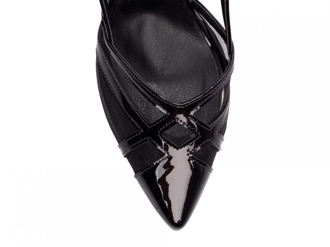 Salto: Fino com 9 cm de Altura Revestido em Verniz Preto
